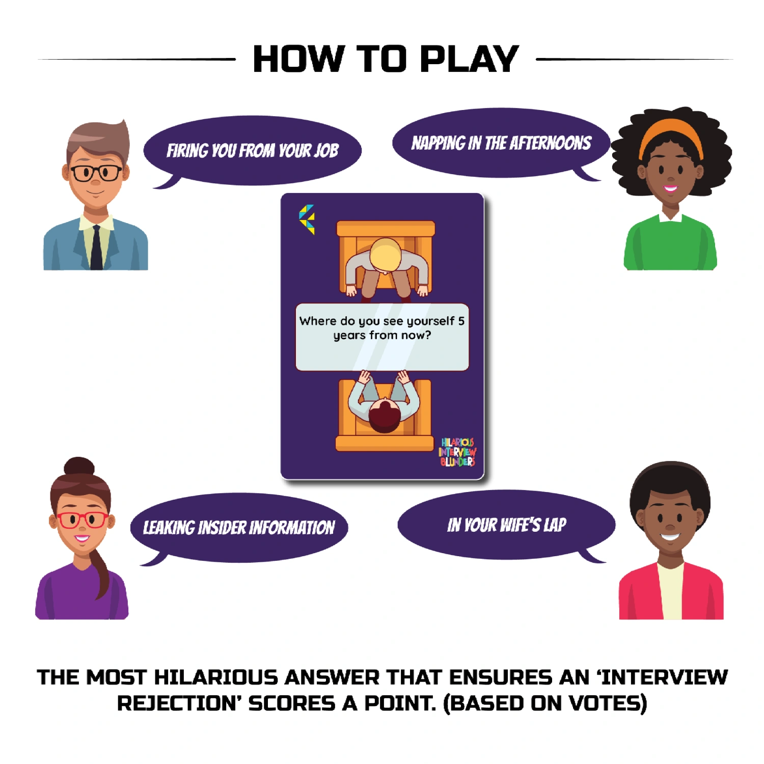 What’s the purpose? At a time when phones and busy schedules are instrumental in reduction in interactions, ‘Hilarious Interview Blunders’ comes in as an ultimate competitive joyride for your game nights. It brings out the creative juices to ensure unlimited laughs in a group setting.