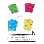 Turn every game night into an unforgettable experience with friends and family! This 5 to 15-minute card game is bursting with excitement and non-stop fun: quick, easy, and endlessly entertaining! Play again and again, with each round more thrilling than the last. Grab yours today and let the fun begin!